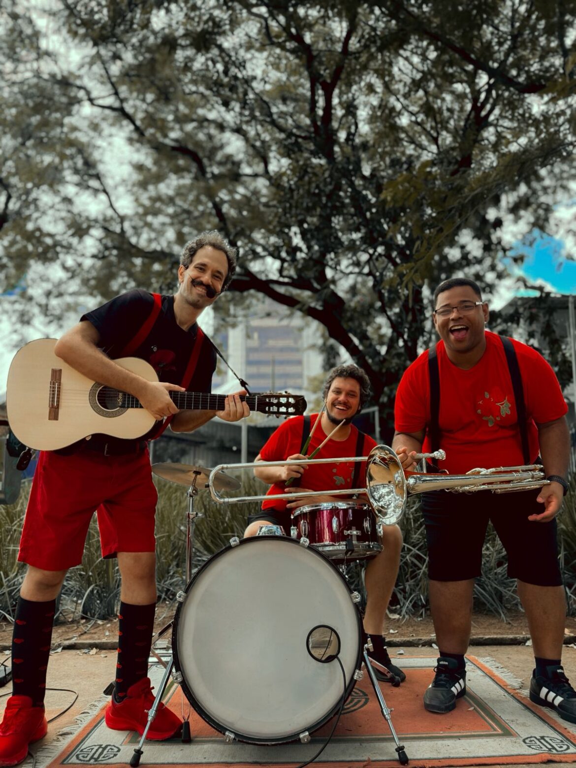 Criado no Carnaval de 2020, o Bloco do Pamp surgiu a partir do convite de Edu Pio aos músicos Leo Brasilino, no trombone, e Fabrino Sofá, na bateria. O formato do trio prioriza a interação direta com o público infantil, respeitando o tempo, a escuta e a participação das crianças.