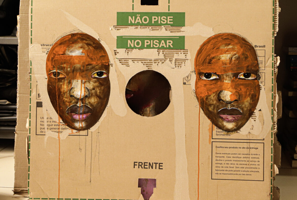 Com curadoria de Luisa Borges, a exposição apresenta 30 obras em papelão e materiais que integram o processo criativo do artista. A produção aborda temas como racismo estrutural, desigualdade social, violência urbana e falta de representatividade negra no circuito das artes visuais. O uso do papelão como suporte artístico estabelece um diálogo com a realidade de pessoas em situação de rua no Brasil, especialmente da região Norte.