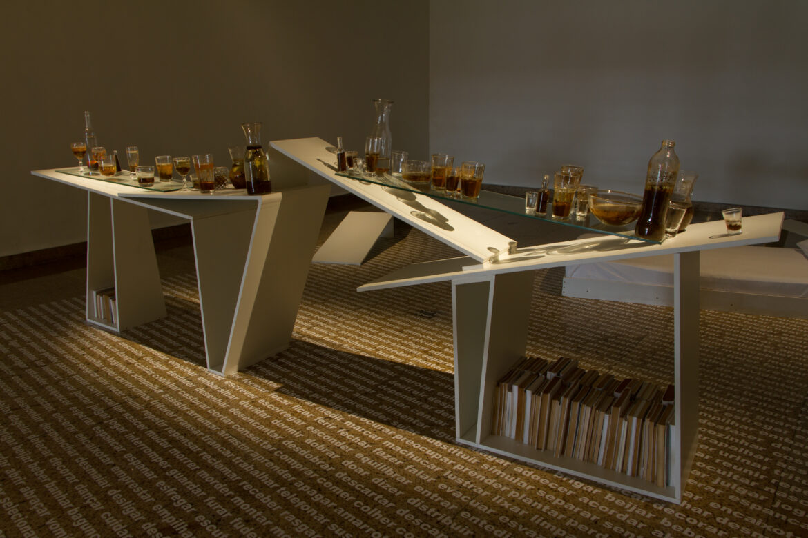 “EM CASA” utiliza a Grande Galeria do Centro Cultural da UFMG para criar uma instalação que reproduz os elementos de uma casa. Cada área da exposição funciona como um cômodo, conectado aos outros, explorando a tensão entre o público e o privado, a ideia de ordem e desordem, e os limites da percepção sobre o lar como refúgio ou local de trabalho.
